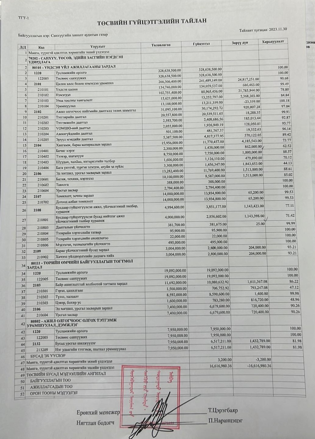 2023 оны төсвийн гүйцэтгэлийн 11 сарын мэдээ